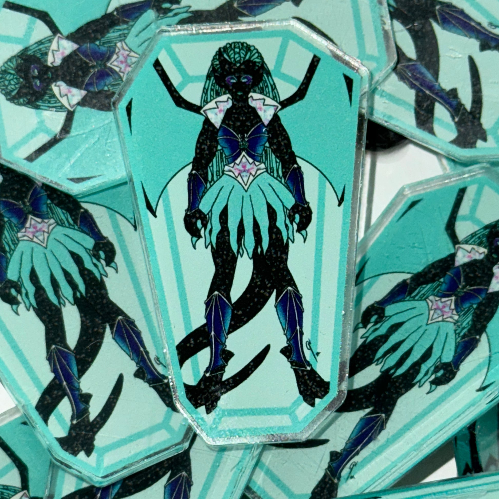 These Acrylic Pins are 2" tall w/ a rubber backer. There is also a clear plastic film to protect the pin during shipping you can peel off on arrival to you.