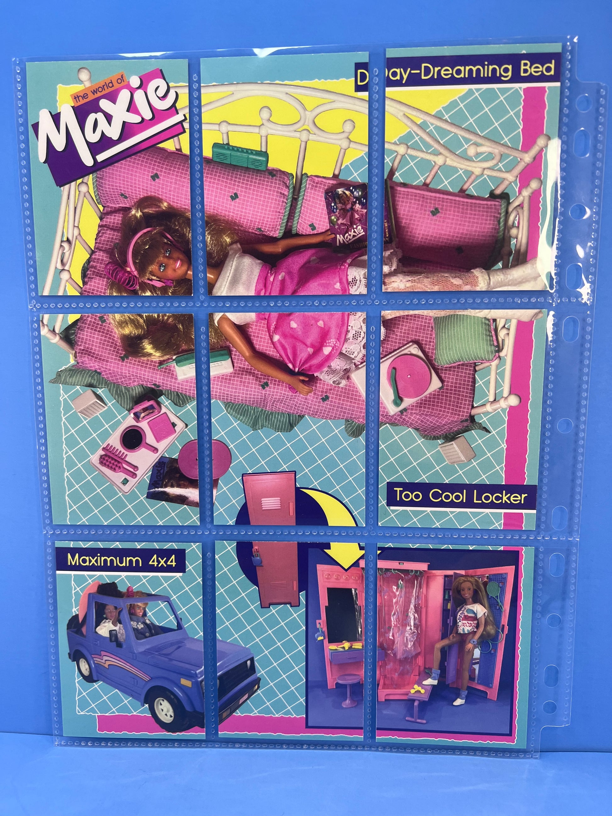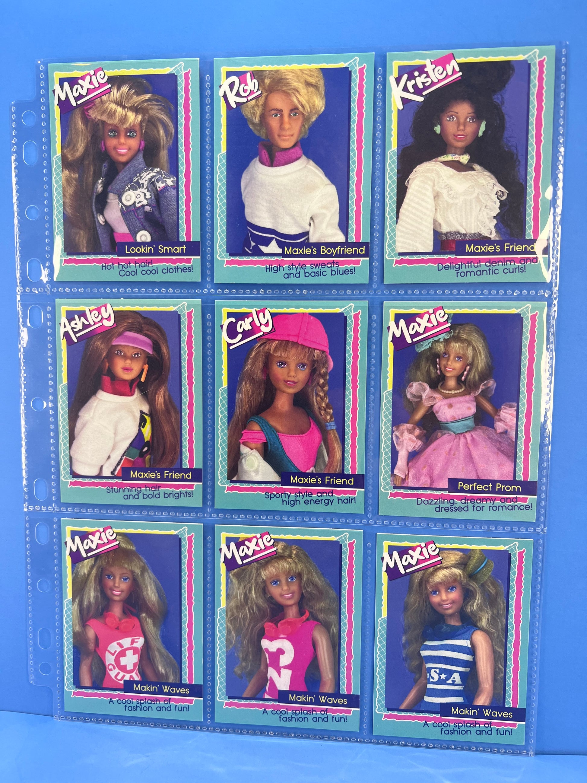 It’s the Lookin’ Smart Maxie Trading Card set! This 9 card set features original photos of the dolls from the 1988 Maxie Fashion doll launch with an updated logo & 80s packaging inspired graphics! Back of cards from a “World of Maxie” poster with fun original photos of some of Maxie’s accessories!